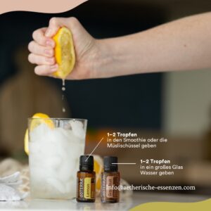 Lemon (Zitrone) ist eines der meistverkauften ätherischen Öle von dōTERRA. Es bietet viele Vorteile und Verwendungsmöglichkeiten. Ätherische Öle aus Zitrusfrüchten sind dafür bekannt, dass sie Stimmung und Energielevel heben, aber sie können auch eine kraftvolle Ergänzung für dein Wasser oder deinen morgendlichen Smoothie sein! Ein paar Tropfen Grapefruit oder Lemon (Zitrone) geben dir den Schub, den du brauchst, um dich auf den kommenden Tag vorzubereiten!